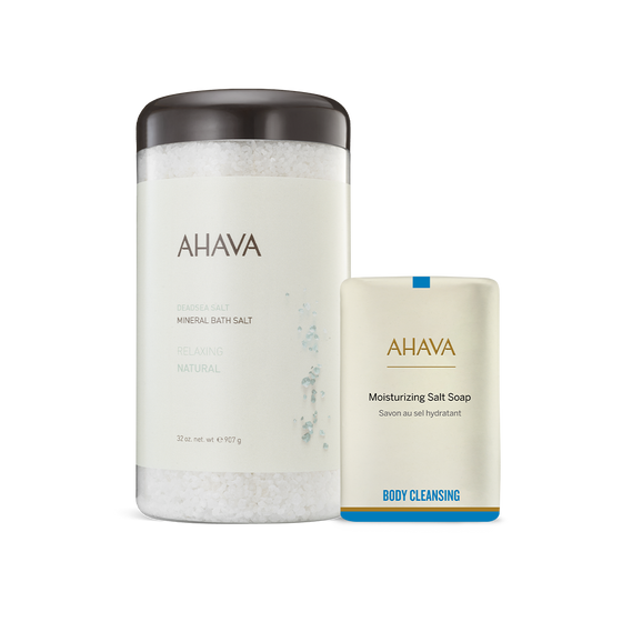 Experience the mineral-rich power of the Dead Sea with this duo. Soothing bath salts and a gentle, moisturizing soap for healthy skin.