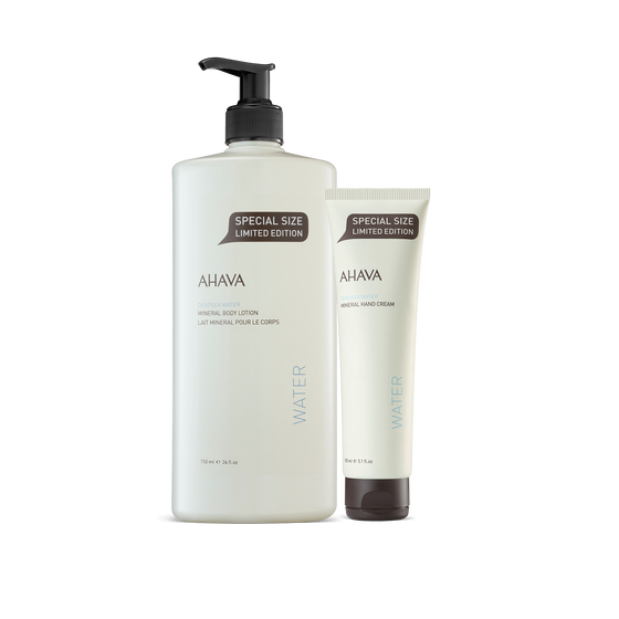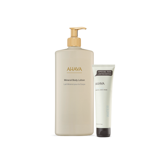 Experience the ultimate hydration with our Triple Size Mineral Body Lotion and 50% more of our beloved Mineral Hand Cream.
